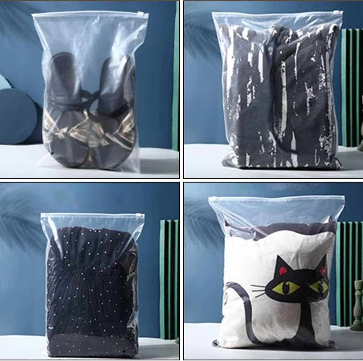 Pak slimmer en bespaar ruimte: deze set van 20 grote transparante ziplock kledingzakken helpt je jassen, dikke truien en badhanddoeken geordend en droog te houden. Met hersluitbare rits en luchtgaatje zijn ze ideaal voor koffer, bagage of opslag thuis, onderweg naar vakantie, festival of evenement.