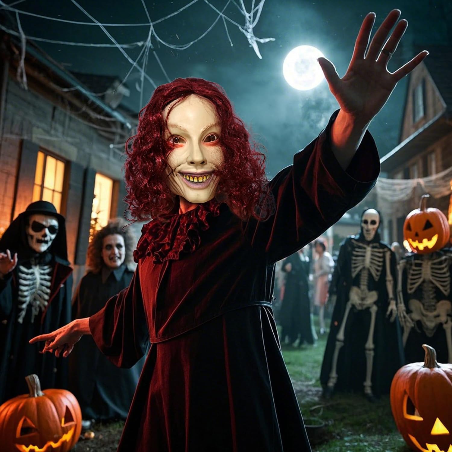 Creëer direct een huiveringwekkende sfeer met dit horror latex masker, geïnspireerd op Ellie uit Evil Dead Rise. Ideaal om vrienden te laten schrikken op Halloween of voor cosplay en spookhuizen. De one-size pasvorm voor volwassenen zit comfortabel, is herbruikbaar en eenvoudig schoon te maken, klaar voor jouw volgende event.