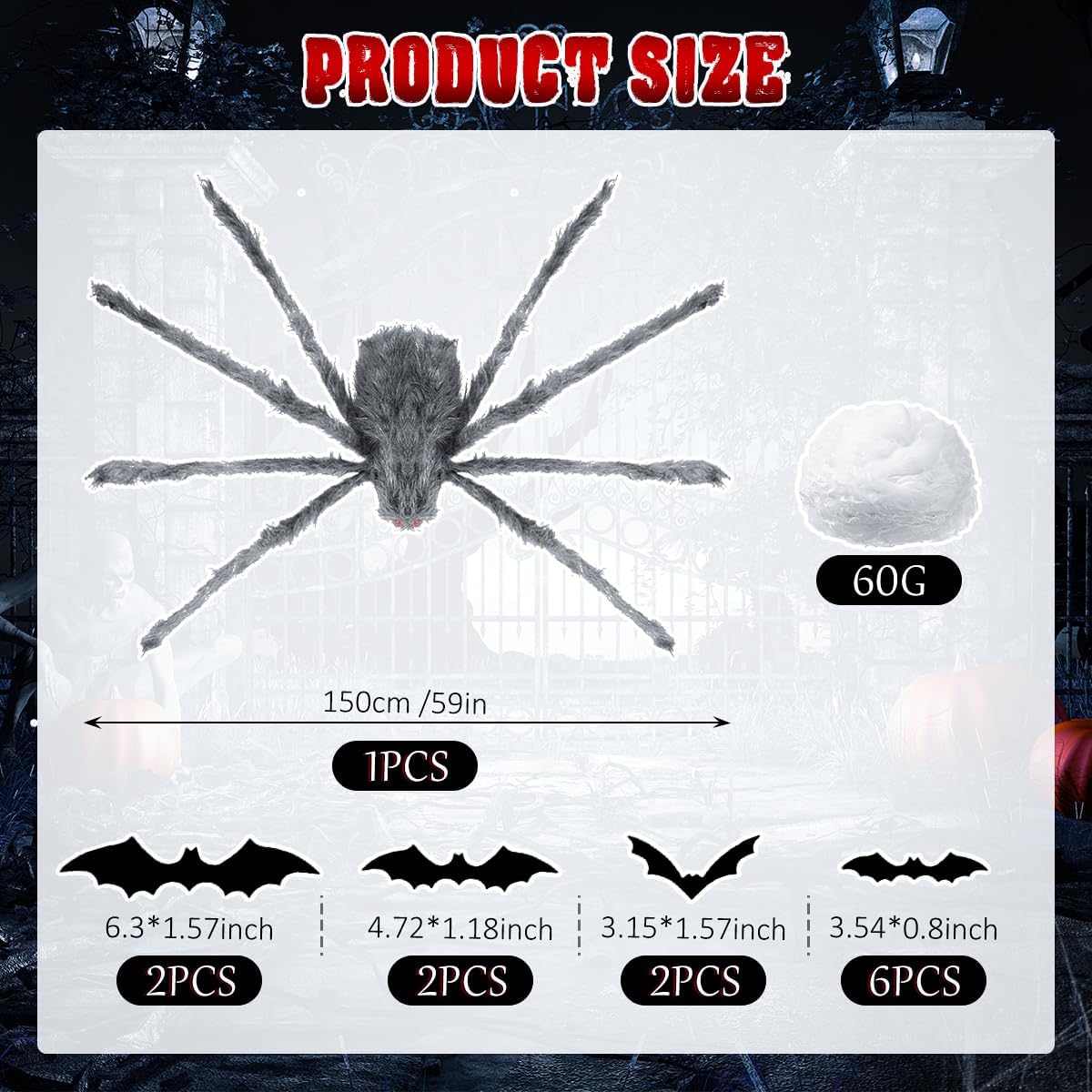 Maak je Halloweendecor extra spannend met deze reuzenspin. De grijze, pluizige spin met felrode ogen en buigbare metalen poten is ideaal om ramen, tuinen en entrees te versieren. Dankzij het lichte, duurzame pluche materiaal hang je hem snel op en jaag je je bezoekers gegarandeerd de stuipen op het lijf.