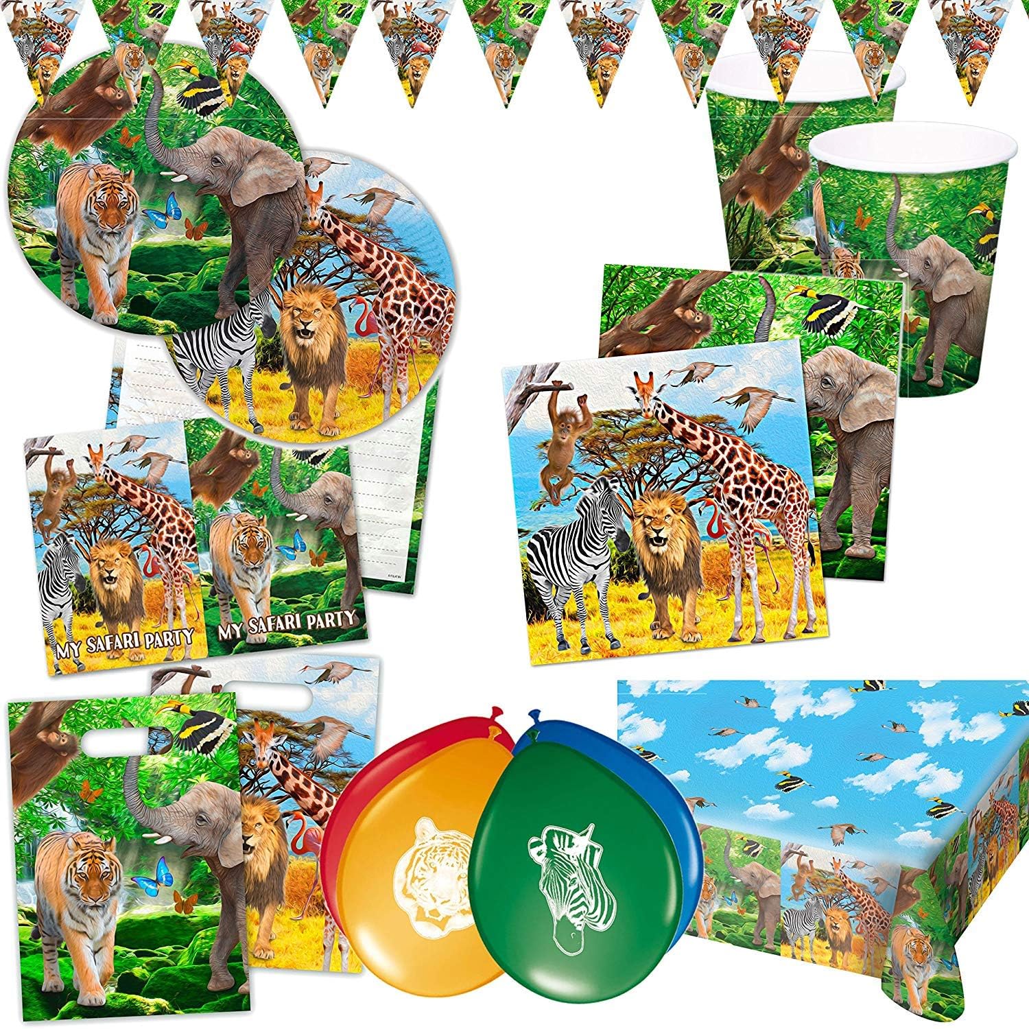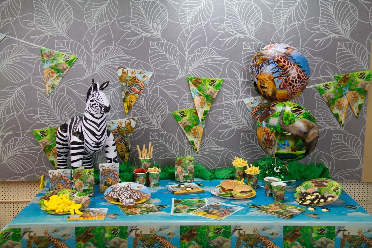 Breng direct safarisfeer in je feestlocatie met deze veelkleurige Safari slinger van 10 meter. Je hangt de stevige kunststof vlaggenlijn snel op en kleedt zo moeiteloos een kinderfeestje of junglethema aan. Ideaal als kleurrijke backdrop, langs muren of over de tafel.